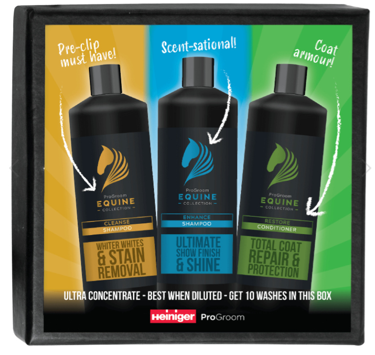 The all-new Equine Collection Trial Packs include everything you need to experience the before and after transformation that everyone has been raving about! This trial pack of 3 ultra concentrate 250ml bottles is good for 10 washes.