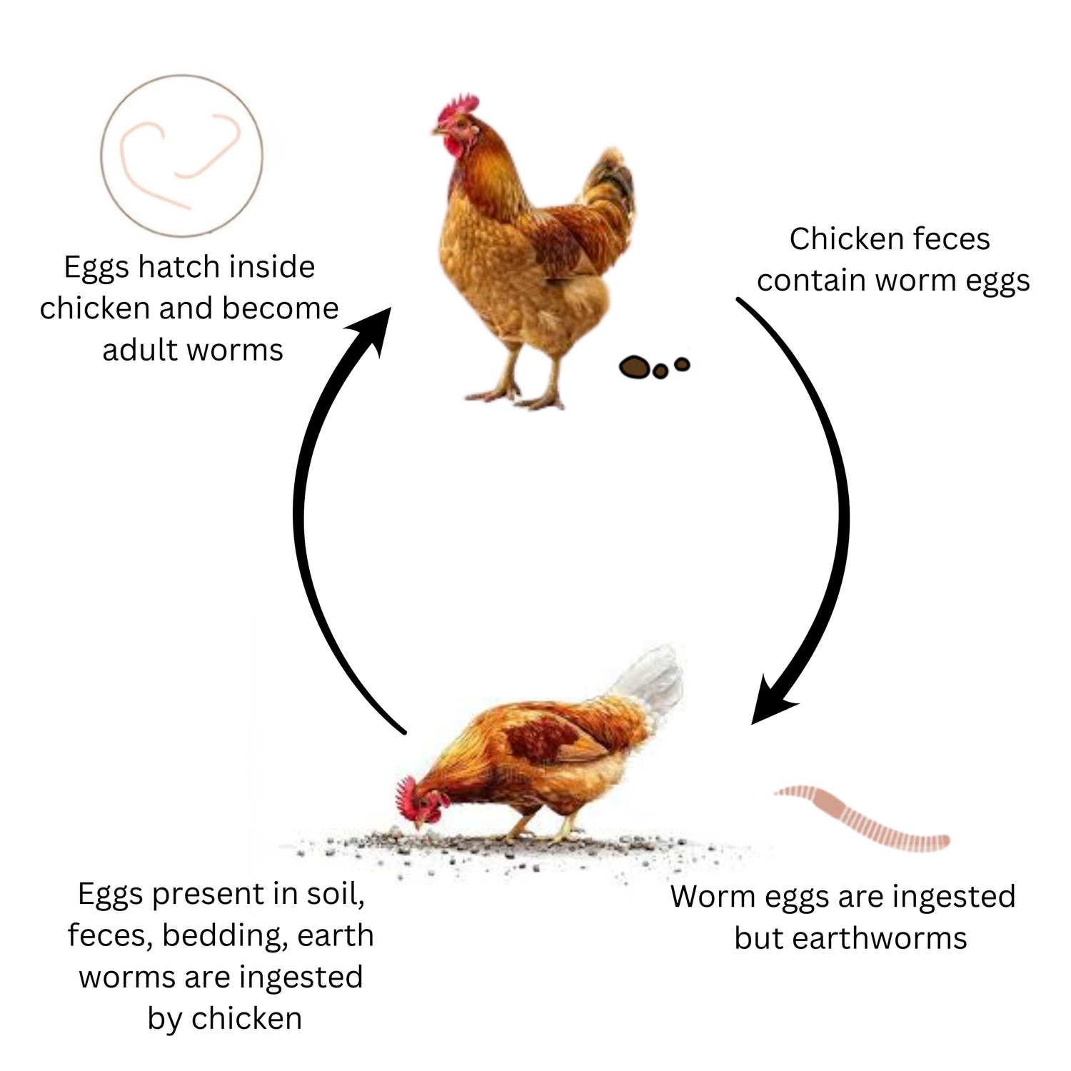 Worms live inside the gut of your chickens, competing for nutrients and irritating the digestive system.