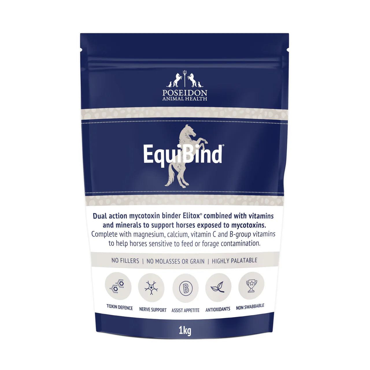 EquiBind is a vet-recommended mycotoxin binder supporting horses exposed to toxins in feed or pasture. Its dual-action formula targets harmful mycotoxins without binding essential vitamins and minerals. Includes added vitamins and magnesium to support digestive function. Safe for laminitic horses and ponies.
