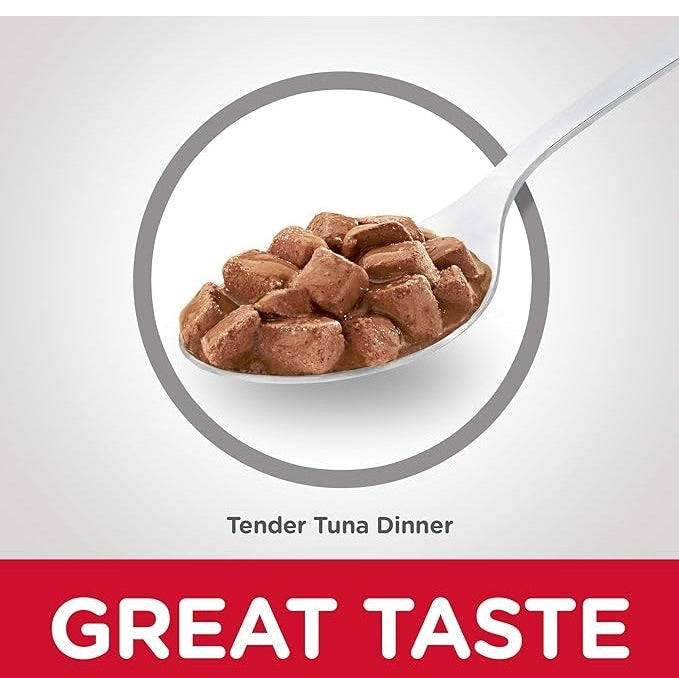 Hill's Science Diet Adult Tender Tuna Dinner a perfect balance between the delicious taste of tender baked tuna chunks in succulent gravy that cats love and the precise nutrition they need.