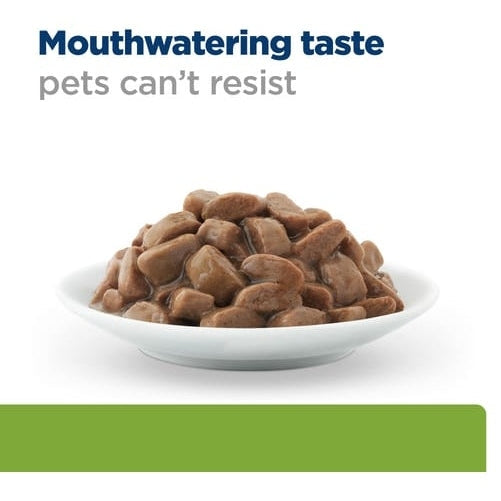 Hill's nutritionists & veterinarians developed Prescription Diet Metabolic clinical nutrition specially formulated to help cats lose weight and keep the lost weight off. This food naturally works with your cat's unique energy use for easy and effective weight loss. This food stimulates cats' natural ability to burn fat and and provides energy for active play. Its unique fibre blend helps keep cats feeling full and satisfied. In fact, 88% of pets lost weight at home in 2 months when fed the nutrition of Metabolic. * This wet food with chicken has an irresistible taste that your cat will love.