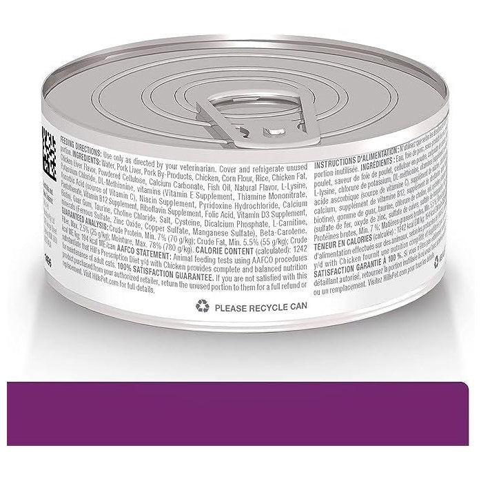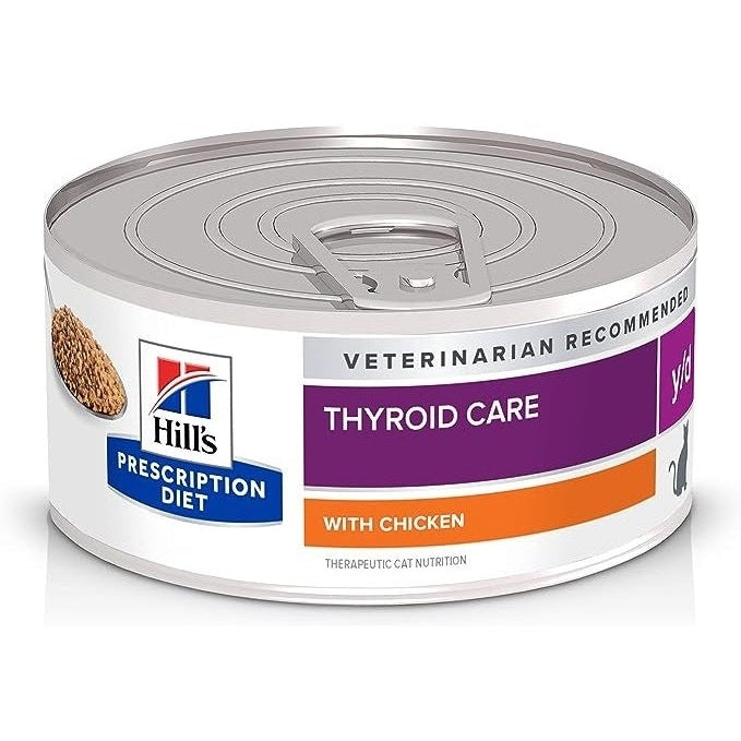 Hill's Prescription Diet y/d Wet Cat Food is an easy and convenient way to help manage a cat's thyroid health and reduce excess thyroid hormone production when fed as the sole source of nutrition. For best results, consistent and exclusive long term feeding of this product is critical for efficacy of the product benefits.