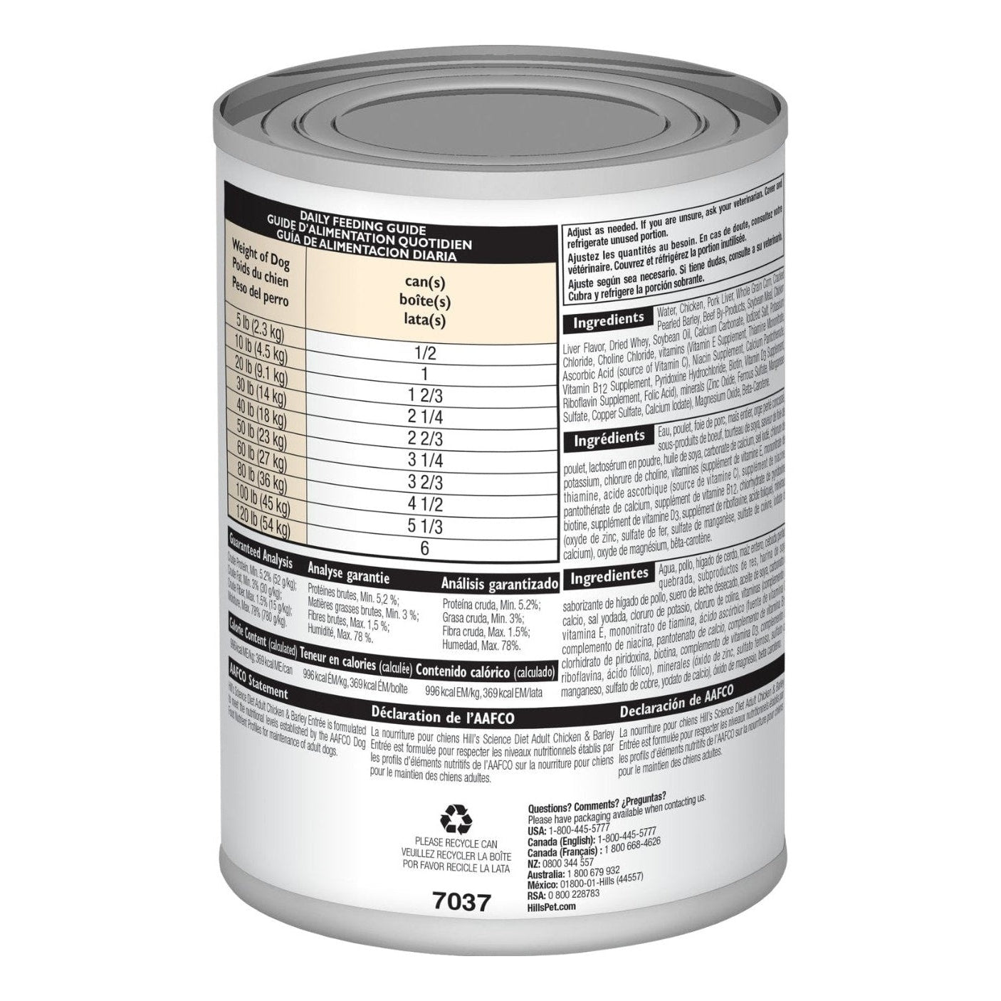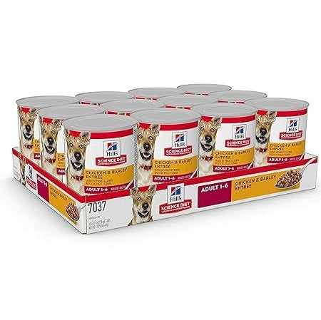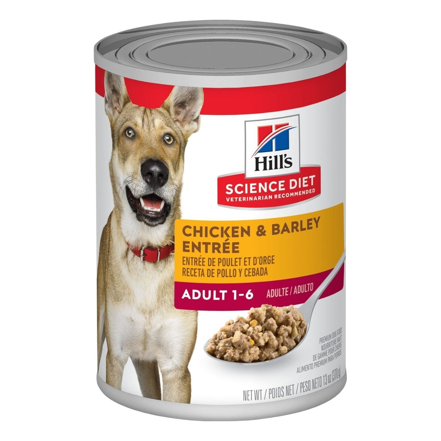 Hill's Science Diet Adult Chicken & Barley Entrée dog food is a delicious way to provide precisely balanced nutrition that is important to the overall health and well-being of your pet.