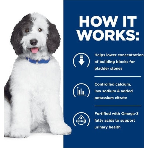 Hill's nutritionists & veterinarians developed Prescription Diet c/d Multicare clinical nutrition specially formulated to support a dog's urinary health and reduce the risk of struvite and calcium oxalate stones. This dry food has an irresistible chicken flavour that dogs will love.