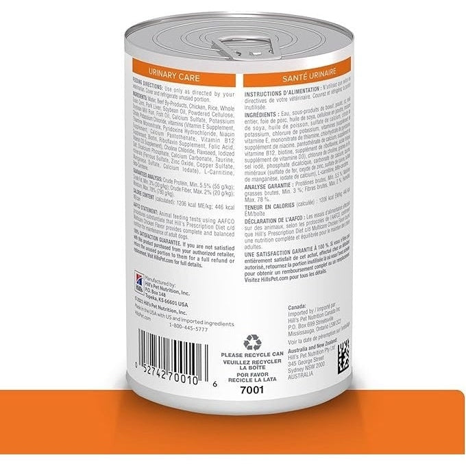 - Hill's Prescription Diet c/d Multicare Urinary Care Chicken & Vegetable Stew Canned Dog Food is specially formulated by Hill’s nutritionists and veterinarians to support your dog’s urinary health