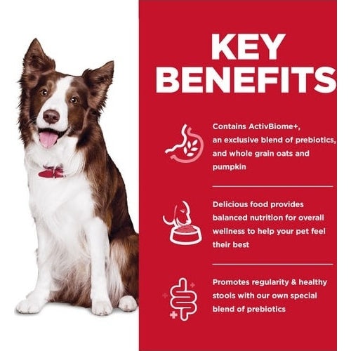 Utilising Hill's very own ActivBiome+ Technology prebiotic blend to nourish beneficial bacteria in the gut, this delicious dog food recipe is specially formulated to support optimal digestion and a balanced microbiome. Highly digestible and made from real chicken for an irresistible flavour, the recipe comes boosted with antioxidants to support a strong immune system, and is designed to offer complete and balanced nutrition for adult dogs.