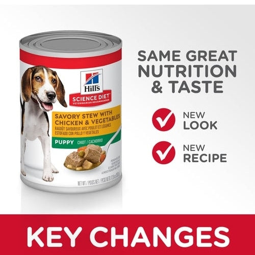 Hill's™ Science Diet™ Puppy Savory Stew with Chicken & Vegetables is a delicious way to provide precisely balanced nutrition that is important to the overall health and well-being of your pet. Made with real chicken and wholesome grains. Delicious puppy food to give them the best start in life.