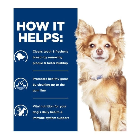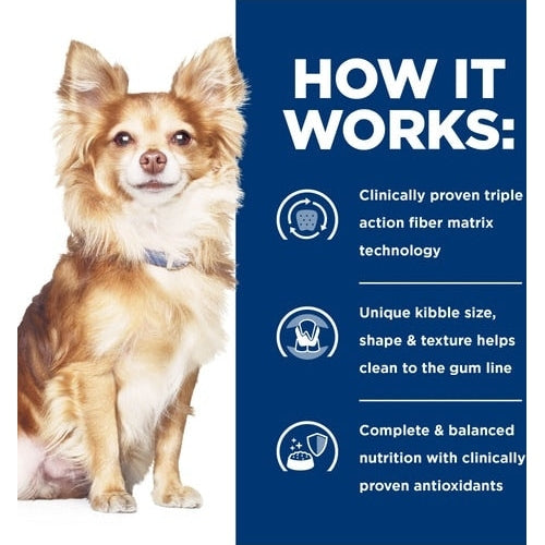 Help dogs maintain fresh breath and strong teeth by removing tartar and plaque as they chew on this kibble. This dry dog food helps you improve your dog's dental health and prevent long-term oral problems. Studies have shown a link between oral health problems and the issues affecting systemic general health conditions that affect the heart, kidney, and metabolic systems. These small bites are formulated to reduce stain, tartar, and plaque buildup in in small dogs.