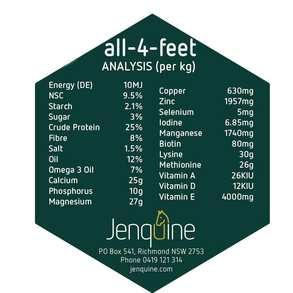 Jenquine all-4-feet® is a concentrated, nutrient-dense feed balancer containing: