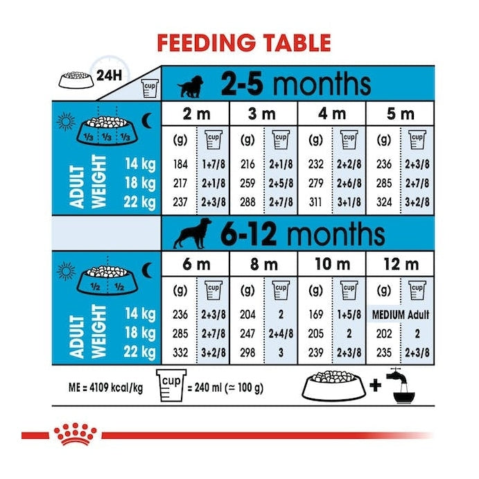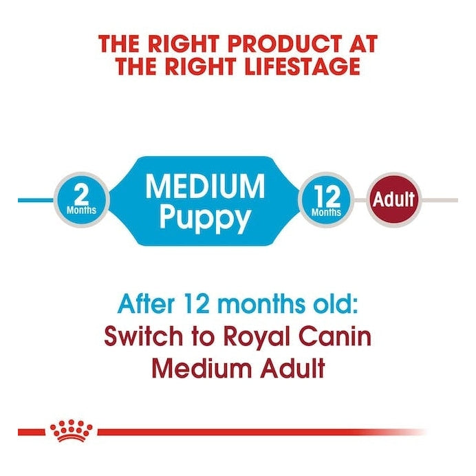 Growth is an essential stage in your puppy’s life, it’s a time of big changes and new discoveries. Because your puppy’s immune system is still developing gradually, a specially tailored diet will help your puppy get all the nutrients it needs to grow healthy and strong. Royal Canin Medium Puppy food is suitable for puppies between 2 and 12 months old that will have a medium-sized adult weight between 11kg to 25kg.