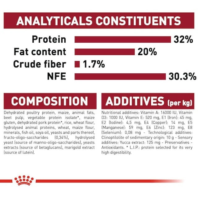 The combination of nutrients containing high-quality prebiotics and protein in Royal Canin® Medium Puppy food helps to support and maintain your puppy’s general digestive health. A group of proteins (L.I.P.) known for their high digestibility has also been included for optimal digestive support.